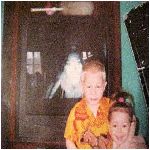 Grandmother gets into the picture with grandkids Deceased Grandmother (reflection on tv screen) wants in the picture with grandkids Closeup of Grandmother